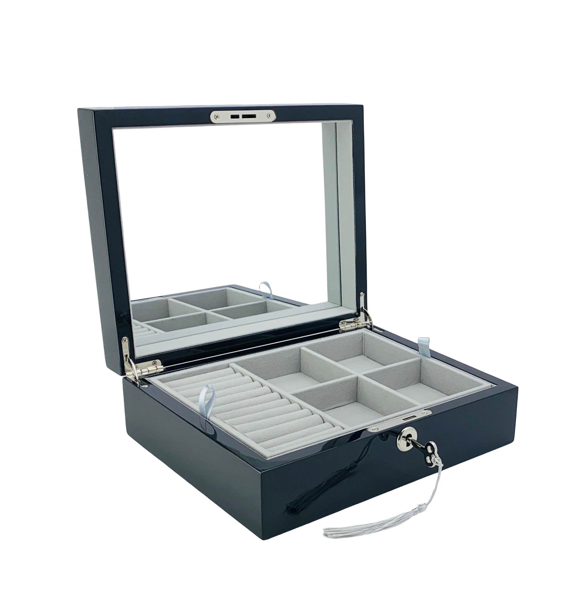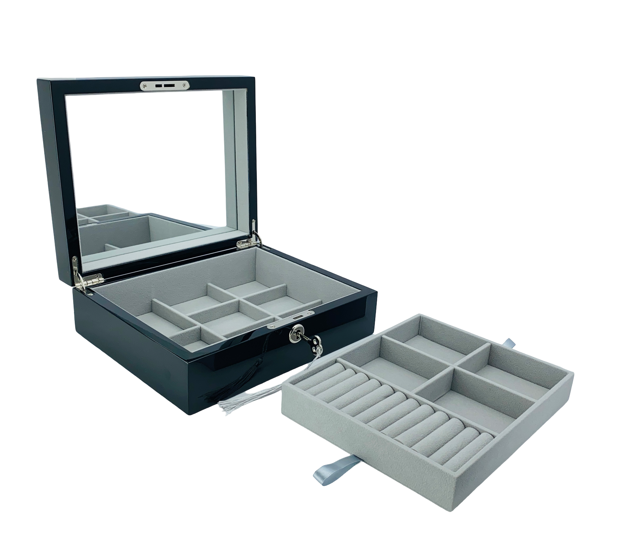 Indulge in sophistication with every detail of our black finished jewellery box, a perfect blend of form and function.