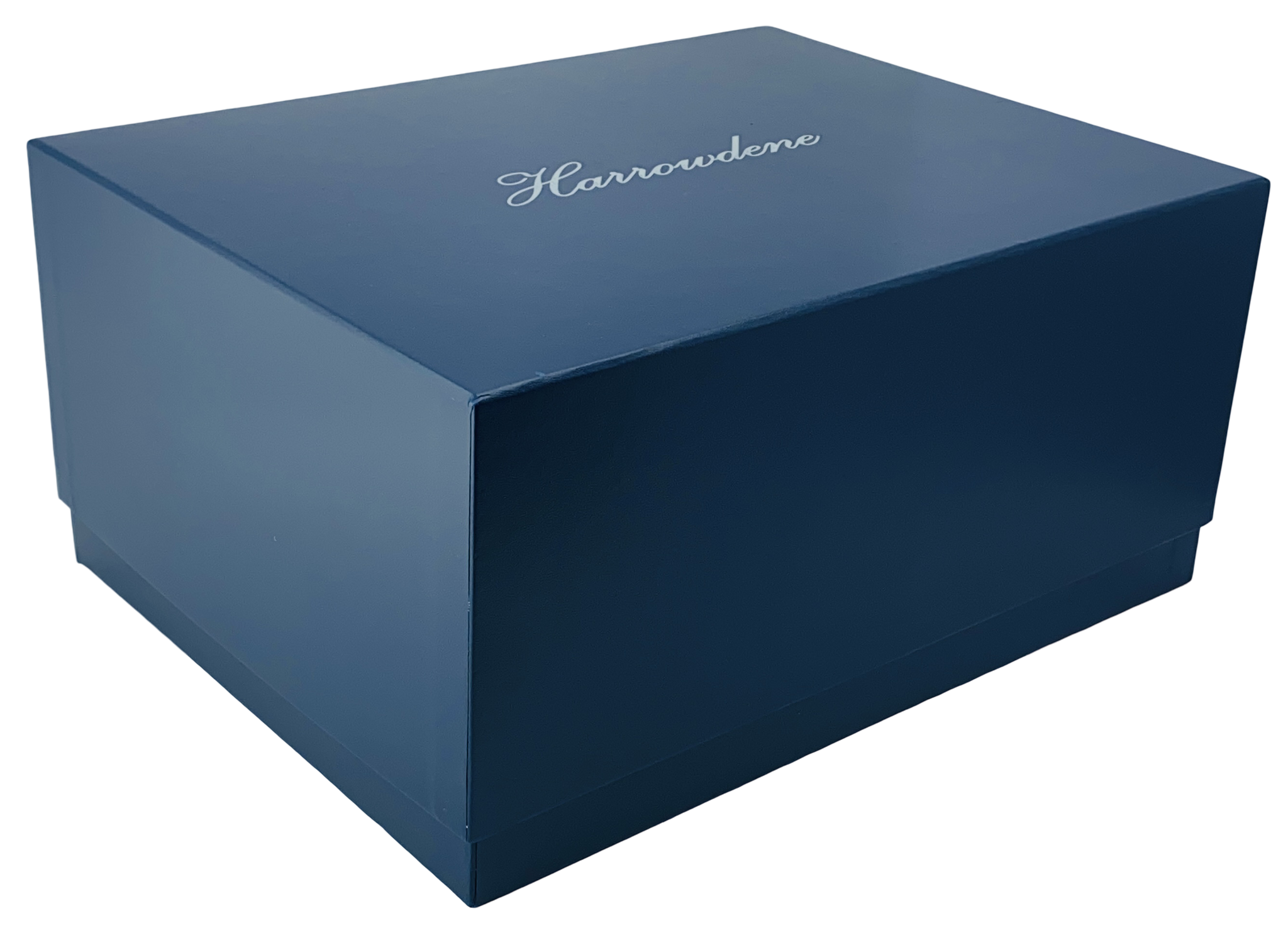 - Gold leaf ‘Harrowdene' branding adorns the high-quality drop-fronted rich Royal Blue gift box, emphasizing its exclusivity.